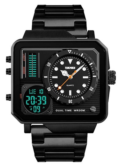 SKMEI 1392 Square Watches for Men, LED Square Large Face Analog Quartz Wrist Watch for Men with Multi-Time Zone Waterproof Stopwatch
