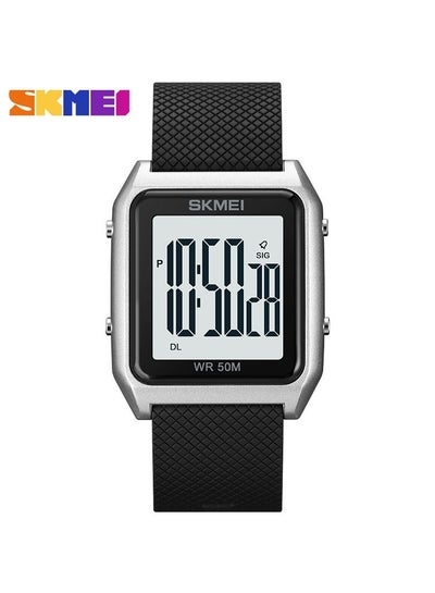 SKMEI 1866 Square Large Screen Men Steel Belt Multi-function Night Light Alarm Clock Watch