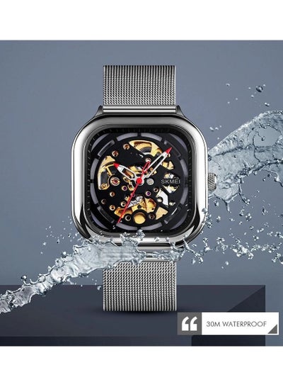 SKMEI 9184 Black Mesh Stainless Steel Automatic Mechanical Luxury Watch For Men