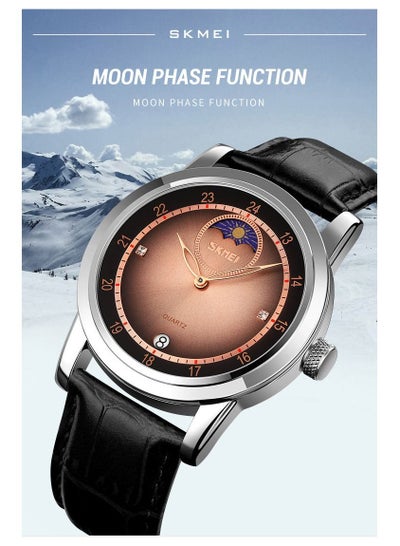 Skmei Men's Watches Leather Quartz Moon Phase Watches Male Clock 9300