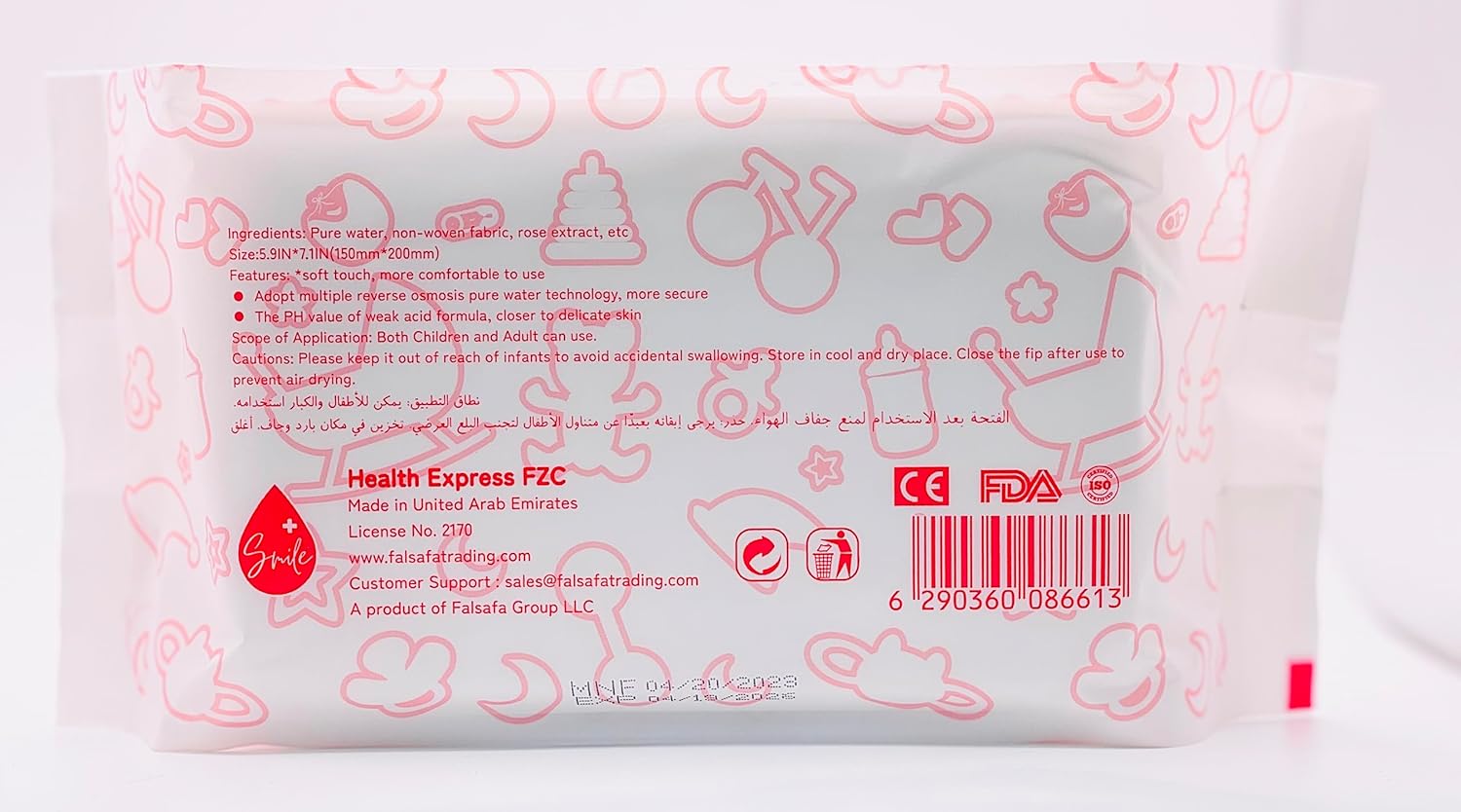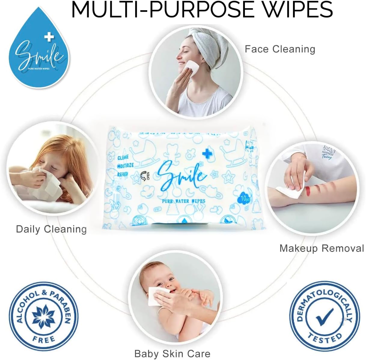 Smile Pure Rose and Water-Wipes, 160 count, Cleanse, Moisturize, Refresh, Hypoallergenic, Organic. both Adult and Childrent can use Pack of 2