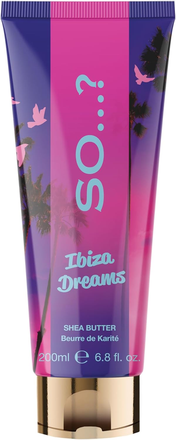 - A PERFECT, SOOTHING FEELING: Get ready to be buttered up with So…? Ibiza Dreams Shea Butter lotion 200ml. Feel the smoothness on your skin and the notes of the sweet red apple, raspberry and pear.