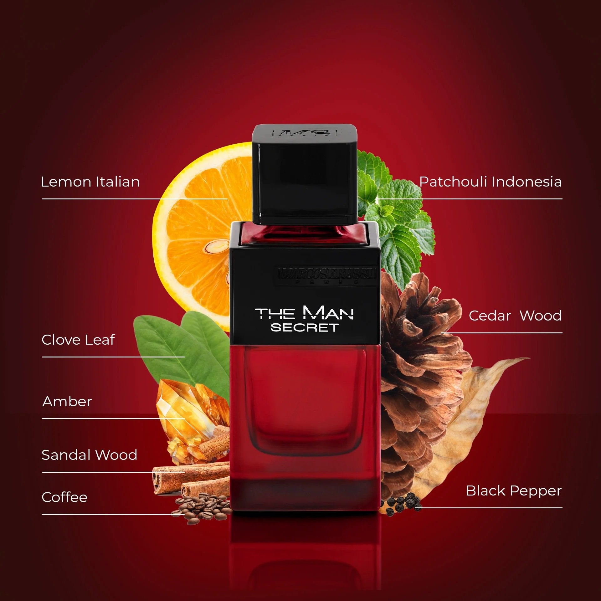 Marco Serussi “THE Man Secret” fragrance is deeply intense, a mysteriously spicy elixir with Amber and Woody facade that doesn’t go unnoticed. The irresistible secret blend of the bright Amber and Wood with the refined Sandalwood on an amusing Patchouli, Cedar Wood and Tobacco background, formulates the bouquet of the fragrance which is mesmerizing.