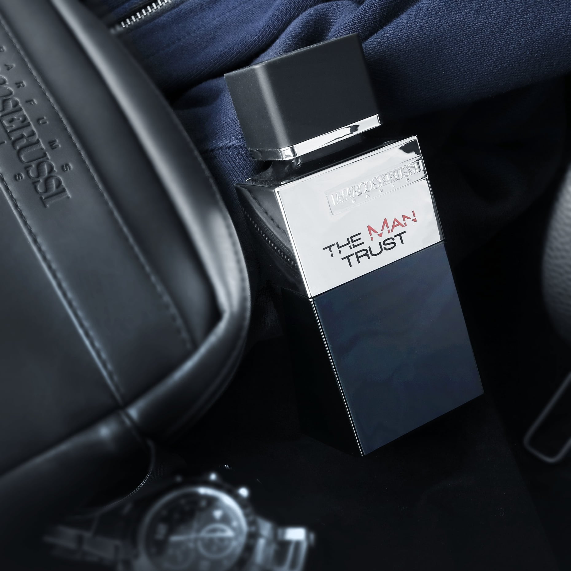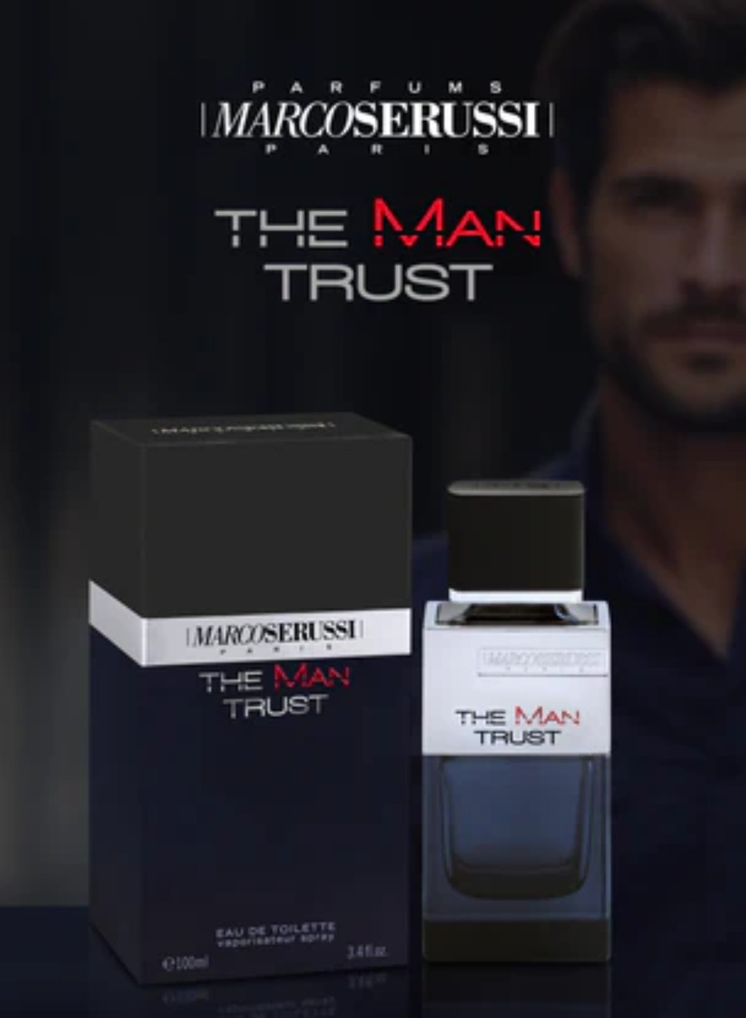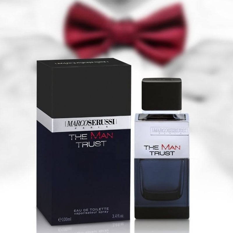 Marco Serussi extends "The Man" collection and adds up a novel fresh blue version called "The Man Trust" a new scent that will dazzle her and confirm his masculinity. The dark blue bottle, with the silver color metal shield, is an elegant form that mirrors his chic and classy manners.