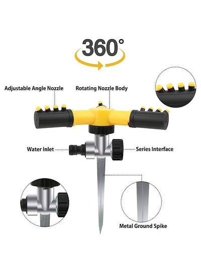 Three Arm Garden Sprinkler, 360° Rotating Sprinkler, Automatic Watering, Adjustable Garden Irrigation System, Garden Sprinkler for Lawns, Garden, Yard, Plants