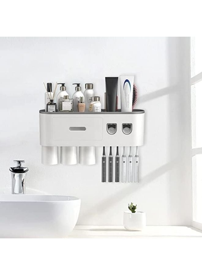 Toothbrush Holder Wall Mounted with Double Automatic Toothpaste Dispenser Squeezer Kit with 3 Cups