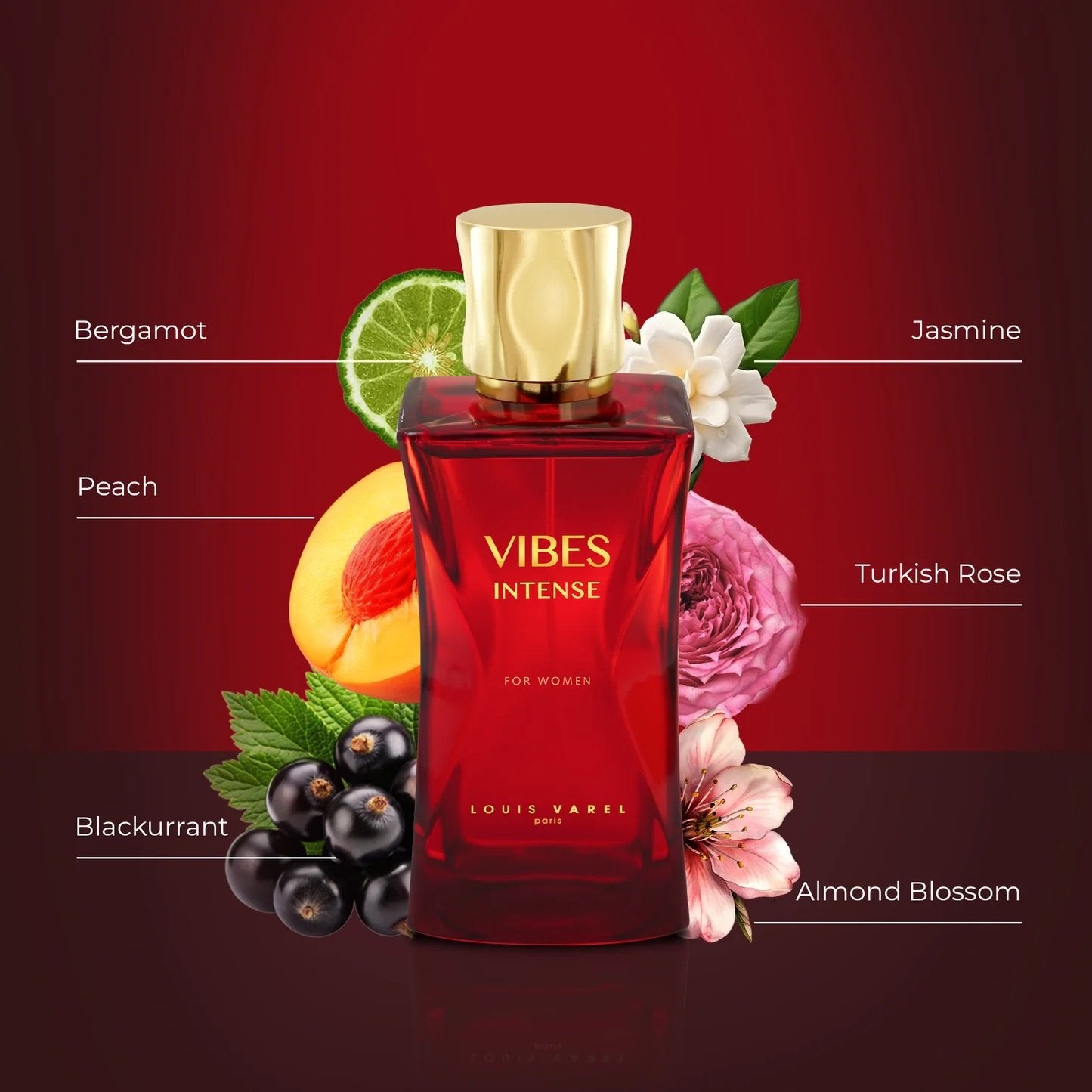 Vibes Intense for Women, is a classy, powdery essence of the woman’s demeanor. The cypress and blackcurrant creates space for a calm and relaxed woman who understands, not only the meaning of her life, but the significance of it. It is a delightful cashmere world she lives in, being filled with happiness, prosperity, as well as her friend Jasmine. Jasmine is complimented with ambry wonders that engulf the woman’s world. It is a fruity, floral fragrance that is full of fresh essences, surrounded by a sweet, Vanilla, Eastern Cedar Wood background.