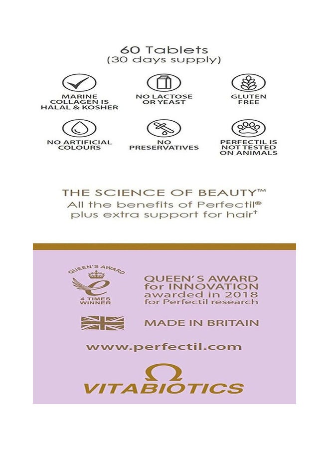 Vitabiotics Pack Of 60 Perfectil Hair Extra Support Supplement Tablets