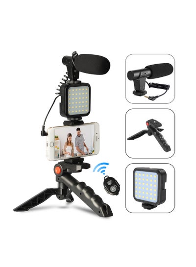 Vlogging Kit Smartphone Camera Video Vlogging Kit for iPhone/Android with Light + Microphone + Tripod + Phone Holder for Vlogging/YouTube/Tiktok/Facebook/Camera