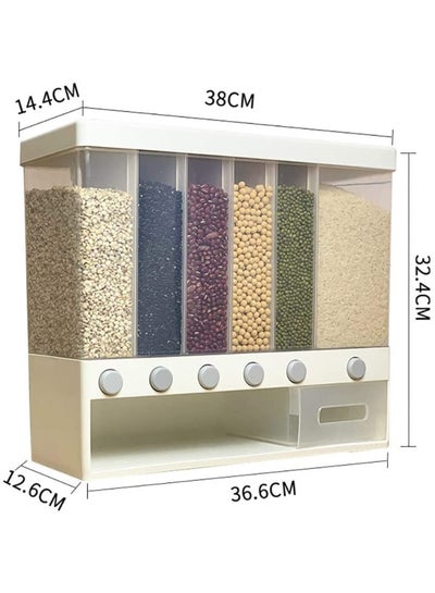 The six-grid food composed of high-quality food-grade PP material. This is completely non-toxic and safe to store food materials. The dispenser is sturdy enough to hold the capacity of 10 kg depending on the cereals.This food dispenser comes with six removable compartment lids to avoid any mix up of the contents of the container. It also has a cover lid to avoid dust to pass through. The measuring cup also comes along with this package which helps you take the right quantity. This storage box can be wall mounted or you can also place it on the countertop. As it is transparent you can have an easy access to the things inside.Wall Mounted- Space Saver
