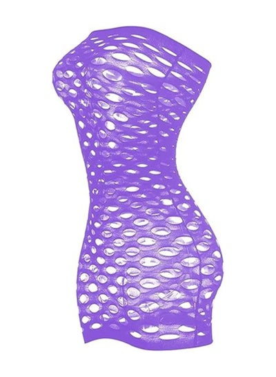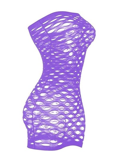 Women Mesh Fishnet Baby Doll Sleepwear - Purple