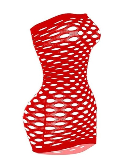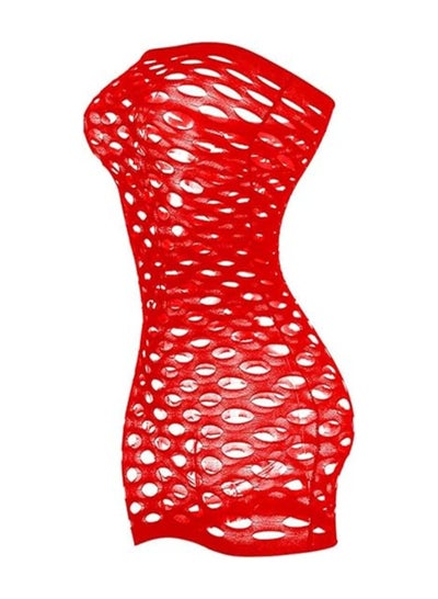 Women Mesh Fishnet Baby Doll Sleepwear - Red