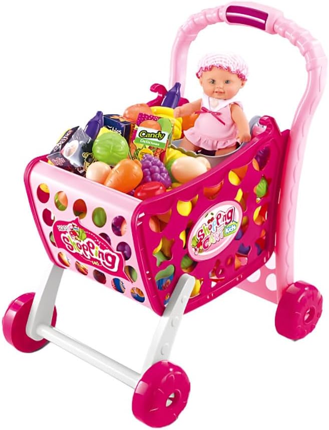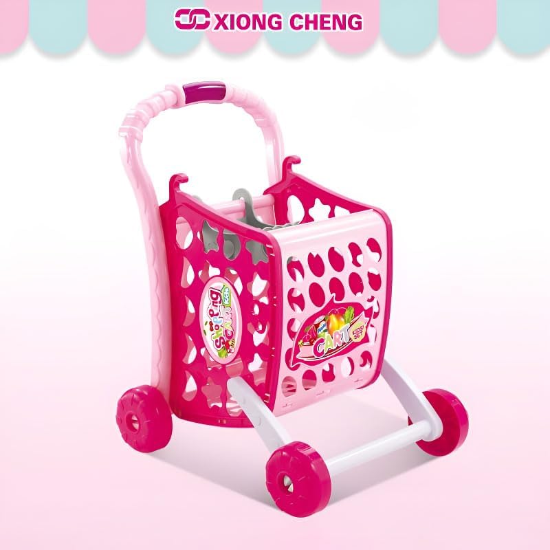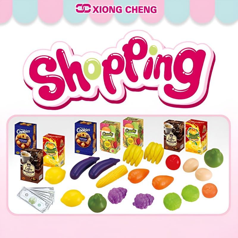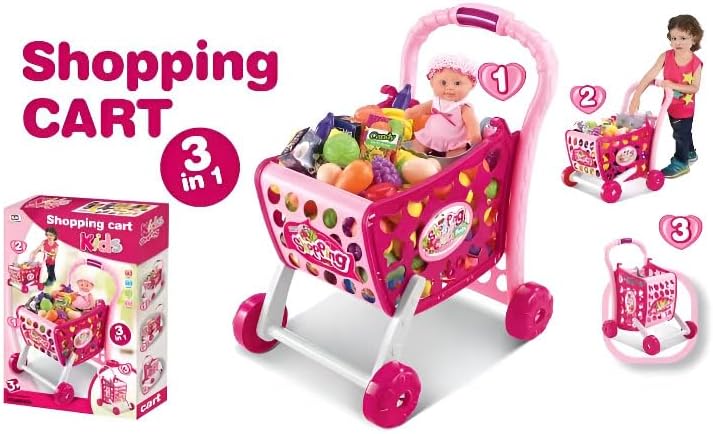 The XIONG CHENG 3-in-1 shopping cart for kids is the perfect gift for children who love to pretend shop and explore their imagination. This 28-piece grocery trolley playset includes a variety of fruits, vegetables, and everyday essentials, providing a realistic supermarket experience.