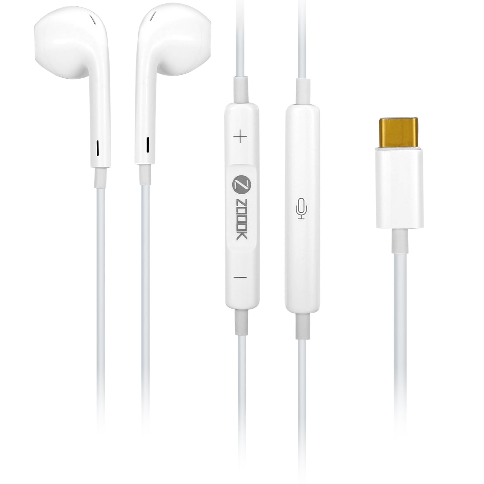 Zoook Genius USB-C Wired Earphones with Mic & Volume Control | Type-C Headphones for iPhone 16/15 Pro Max, Samsung Galaxy S23/S22/S21, Note 10/20, A53/A54, Android Smartphones & Tablets